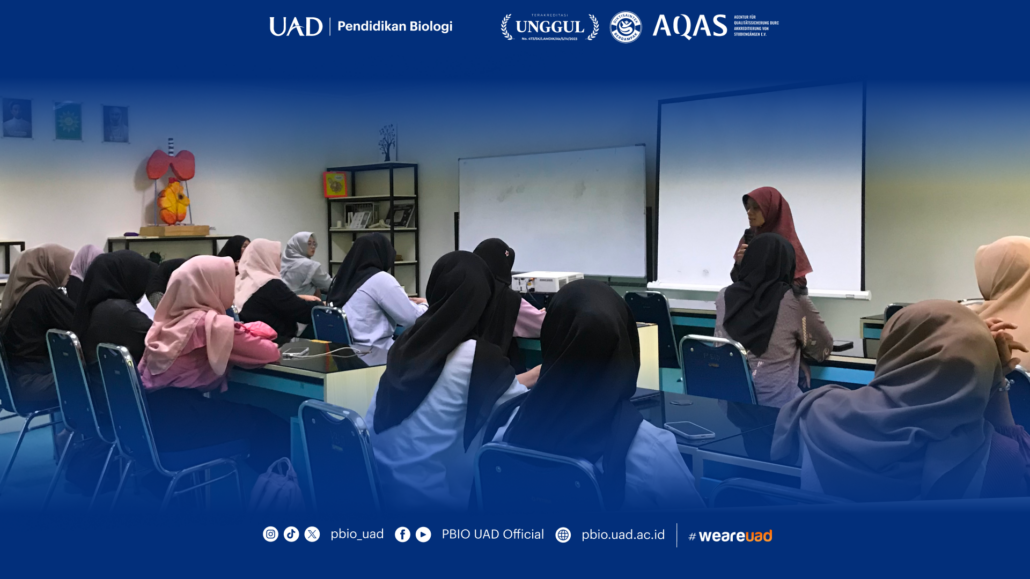 Yogyakarta 7 April 2026 – Program Studi Pendidikan Biologi Universitas Ahmad Dahlan (UAD) menyelenggarakan kegiatan Seminar Proposal Stadium Generale (SG) bagi mahasiswa semester 6 yang bertempat di Laboratorium Pengembangan Produk Pembelajaran Biologi Lt 1. Kegiatan ini bertujuan untuk memberikan pembekalan intensif dan penguatan metodologi penelitian dalam mempercepat masa studi mahasiswa melalui putaran baru. Salah satu narasumber kegiatan, Dr. Risanti Dhaniaputri, M.Sc menyampaikan bahwa Stadium Generael kali ini merupakan langkah strategi untuk menyambungkan pemahaman mahasiswa dari mata kuliah Metodologi Penelitian ke tahap implementasi tugas akhir. “Di kurikulum baru ini, mahasiswa semester 6 diwajibkan untuk melaksanakan Seminar Proposal (Sempro). Melalui Stadium Generale ini, kami memaparkan kembali mengenai sistematika penulisan, identifikasi jurnal pendukung, hingga jadwal waktu yang harus dipatuhi mahasiswa agar target kelulusan tepat waktu dapat tercapai,” ujar Dr. Risanti Dhaniaputri, M.Sc saat diwawancarai.